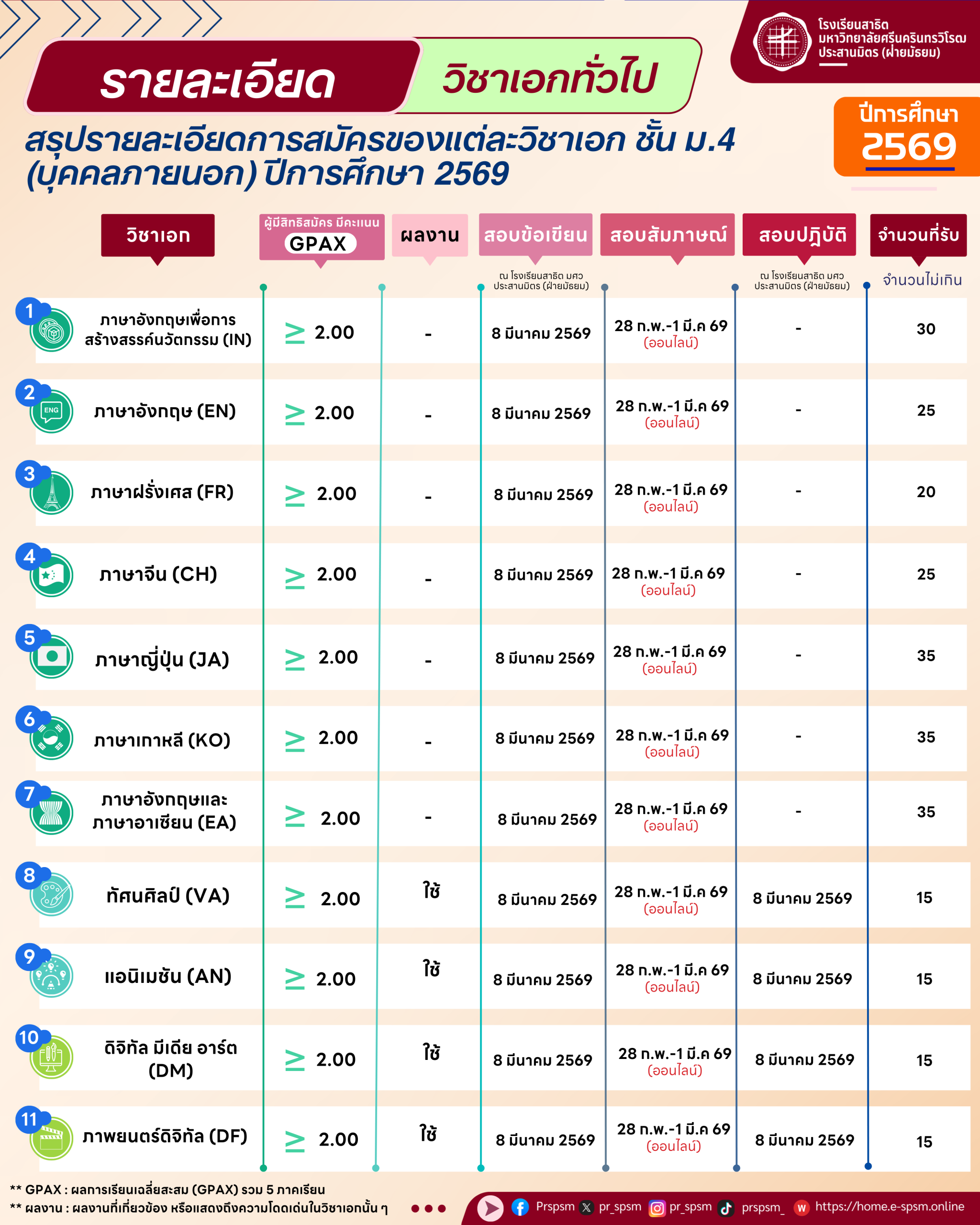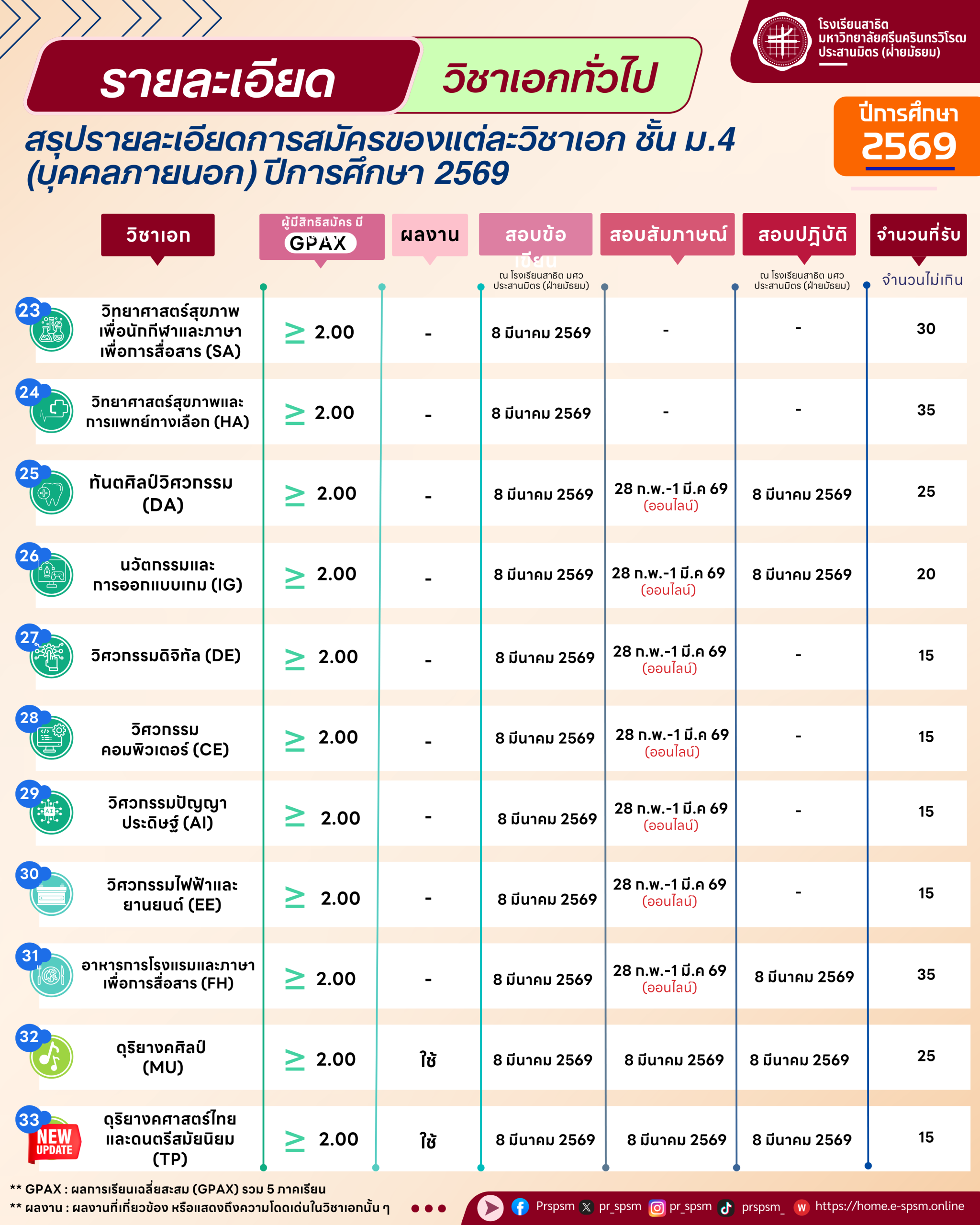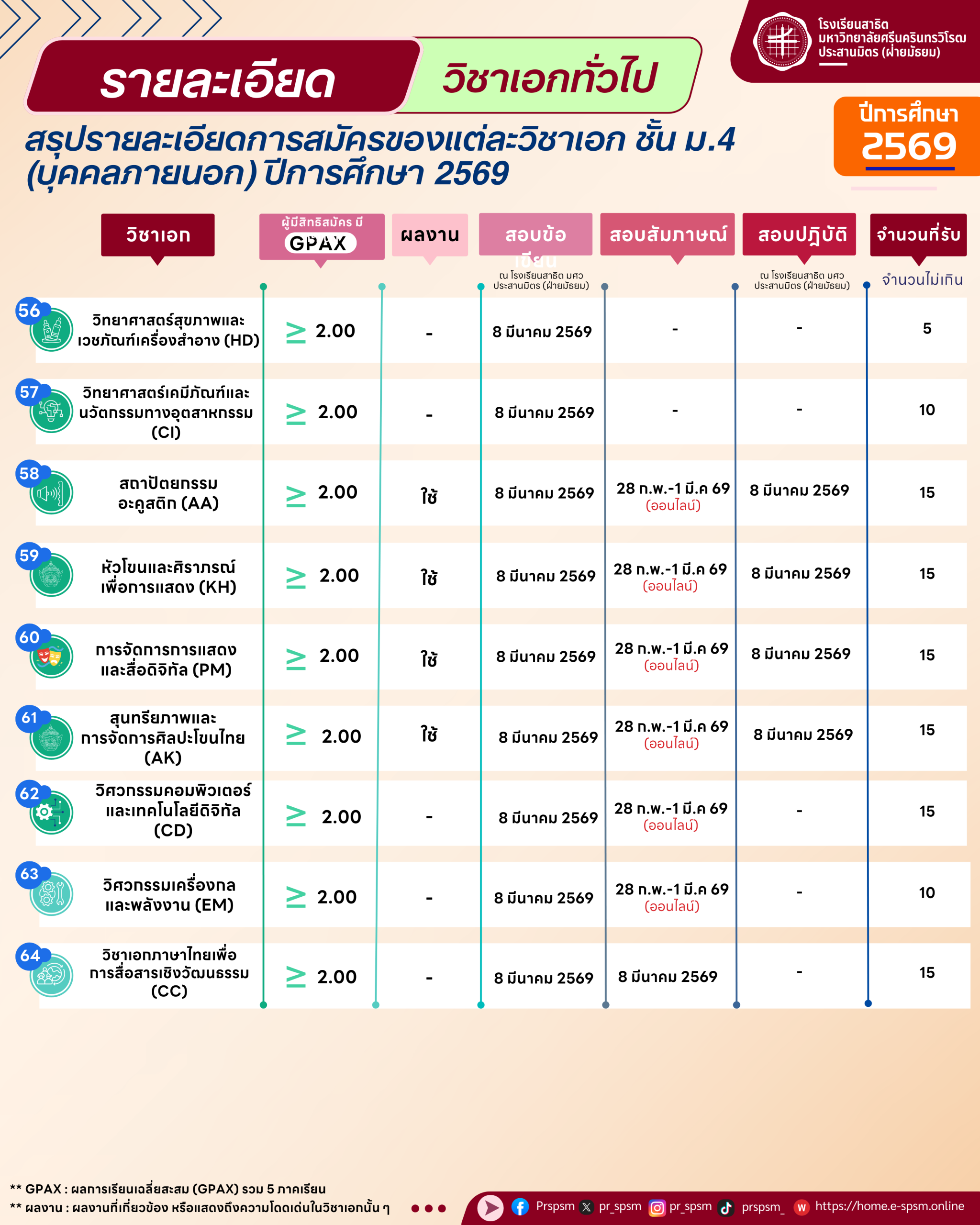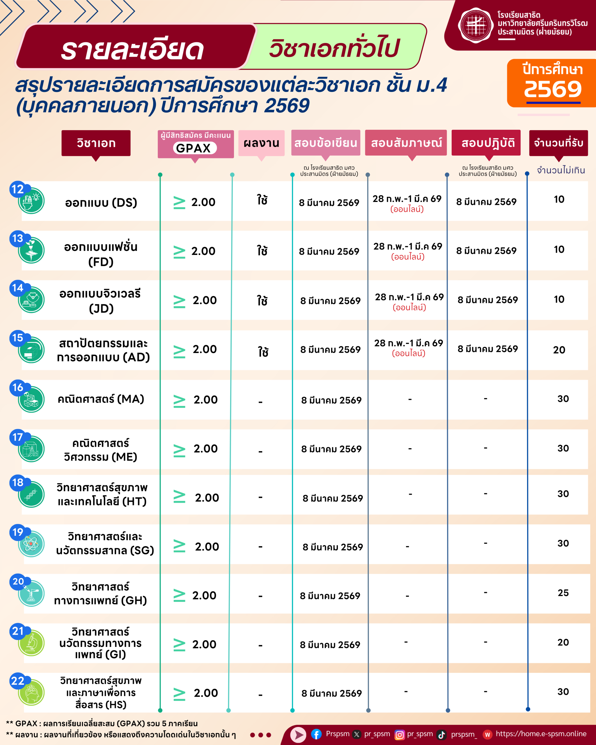 อ่านรายละเอียดการสอบเข้าของวิชาเอก